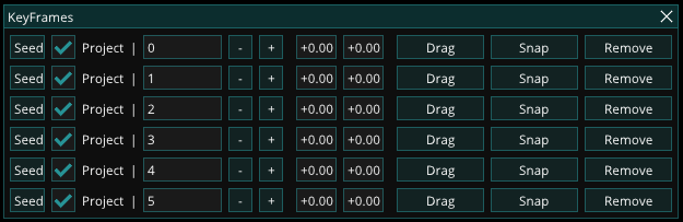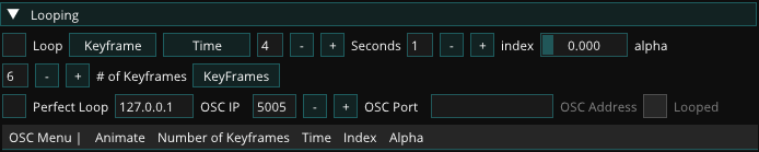 - Keyframes: This popup window controls the keyframes used to generate the loop. You can add keyframes by clicking the keyframe button which opens a popup.