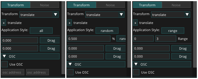 Each transformation's parameter can be controlled by an appropriate interface or by OSC.